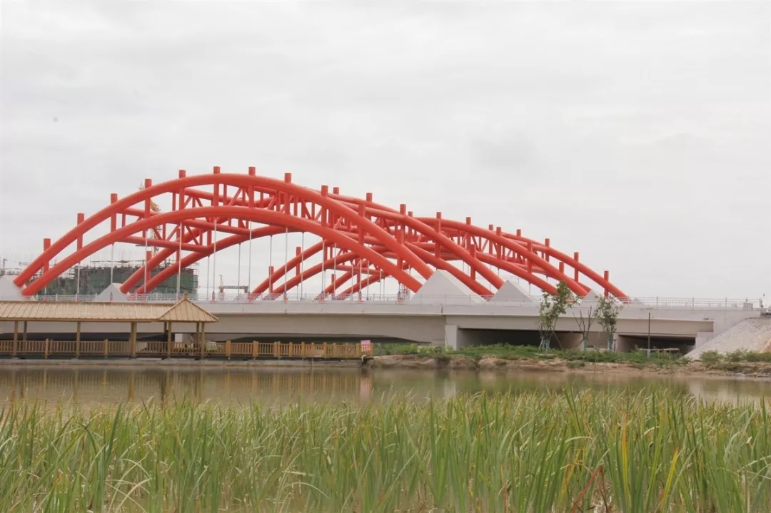 The K5+159 bridge is critical work of Weiqilu project in Lanzhou new township, over spanning on 2nd lake. The location is very important. The design is box beam (1-25m+1-60m+1-25m); the length is 120.82 m. It was commenced on 5 June 2011 and finished on 15 Nov 2014. Since it was in use, the unique structure and red appearance became a land mark and was acclaimed by all.