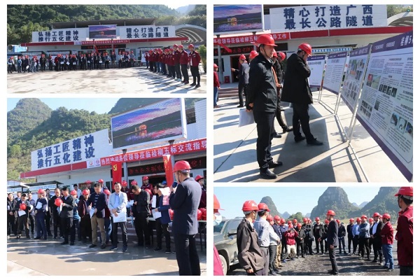Visitors came to Guiliu project in Guangxi on 12 Nov. At the exit of Yongfu tunnel, and Siding interchange construction site, visitors discussed and exhanged on quality control, new techology, material and equipment.