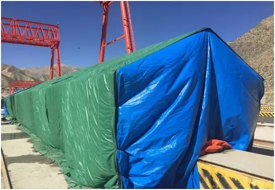 针对高原干燥、低温气候,梁板养生采用夹棉覆盖养生棚