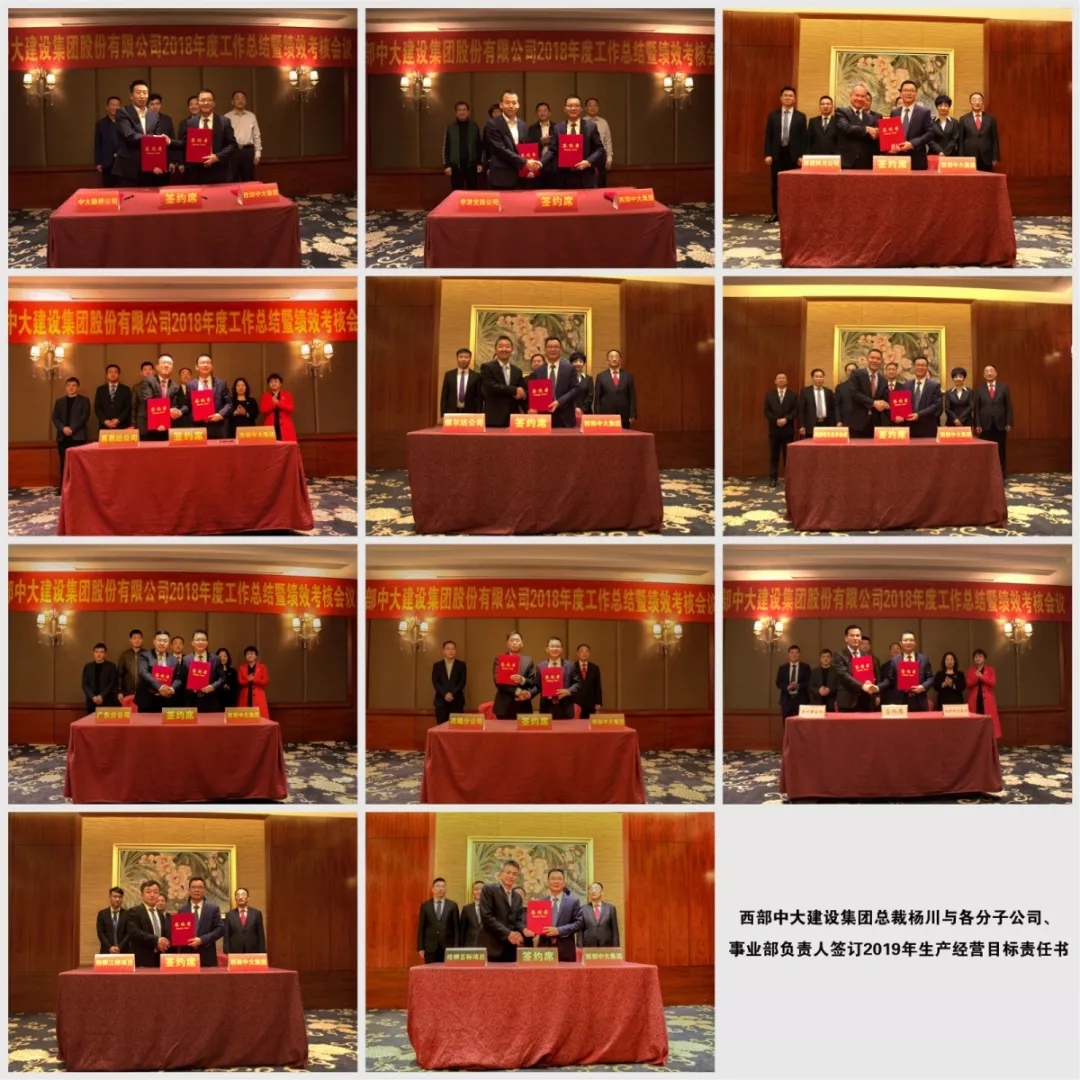 会后总裁杨川代表集团公司同各二级单位签订了2019年生产经营目标责任书,签订仪式上,各单位负责人均表示,2019年一定紧跟企业变革步伐,勤勤恳恳,脚踏实地,完成2019年生产经营目标任务。