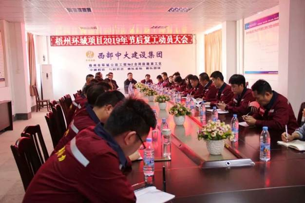 梧州、北绕城等项目先后召开复工动员会工作会议,总结2018年工作,部署2019年任务,放眼全局确保全年工作起好步。各项目对全年工作认真部署,深入落实“五化建设”和“工匠精神”,切实强化施工现场管理。