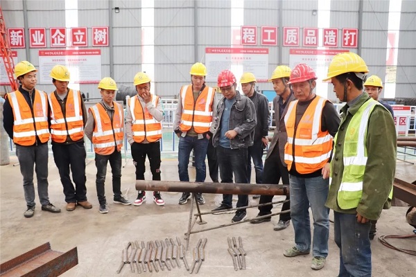 当天下午,桂柳总包管段工程师带领各项目部工程部长及各作业面焊工参观了古毫隧道加工场钢构件的焊接质量,各作业面焊工对于加工场内钢筋及拱架的焊接质量赞不绝口。凭借多年丰富的工作经验,古毫隧道焊工胡师傅采用深入浅出的语言,更接地气的讲解方式,积极调动在场焊工的学习积极性,详细讲解了气保焊的焊接技巧及注意事项,促进理论知识的掌握更加全面化,并亲自进行现场实操演练。