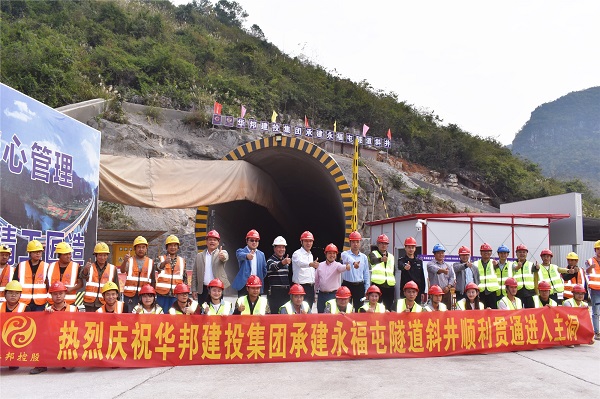 11月12日,华邦建投集团承建的桂林至柳城高速公路五标永福屯隧道斜井顺利贯通,为正线施工夯实了基础。