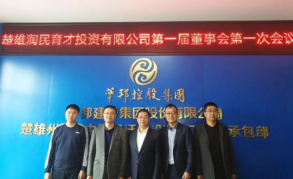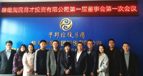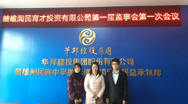 11月11日,华邦建投集团控股子公司楚雄润民育才投资有限公司(以下简称润民育才投资公司)在楚雄市召开第一届董事会、监事会第一次会议。华邦建投集团授权代表张晶晶,公司董事赵熙宇、陈云宇、王德民、郭永东,监事刘晓燕、陈晓蓉、李金鹏出席了会议。云南事业部高级管理人员张潇月、刘波列席了会议。润民育才投资公司董事长张志强主持会议并宣读相关议案。
