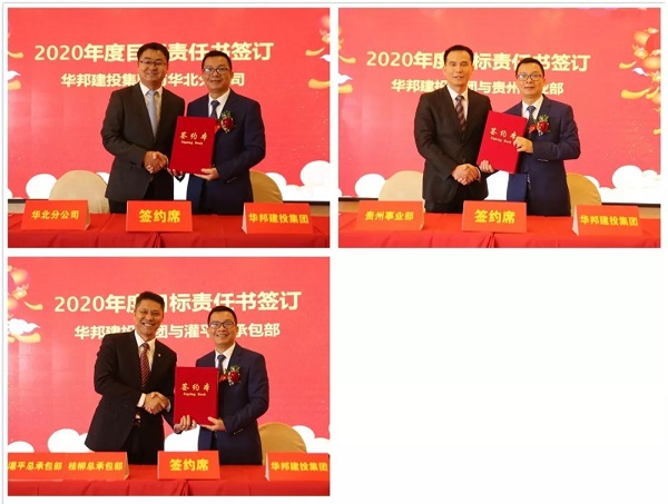 随后,部分分子公司、事业部与集团公司签订2020年度目标责任书并庄严宣誓,表示将坚决履行岗位职责,认真执行管理制度,严格恪守职业操守,认真完成全年工作任务和目标,并接受全员监督,为缔造社会尊敬的百年华邦而努力奋斗。华邦控股集团副总裁李顺臣监誓。