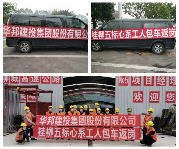 当下防疫形势依然严峻,部分工人对疫情的危害性认识不足,正值复工返岗高峰期,工人群体疫情感染风险增大。为进一步落实落细疫情管控措施,帮扶工人群体施工人员返岗就业,让施工人员及时返回驻点开展复工,华邦建投集团桂柳高速各项目部秉承 “一手抓战疫防控,一手抓复工生产”原则,在满足防疫要求的前提下,努力创造复工条件,通过“点对点、一站式”直达返程方式,组织工人安全有序复工复产。