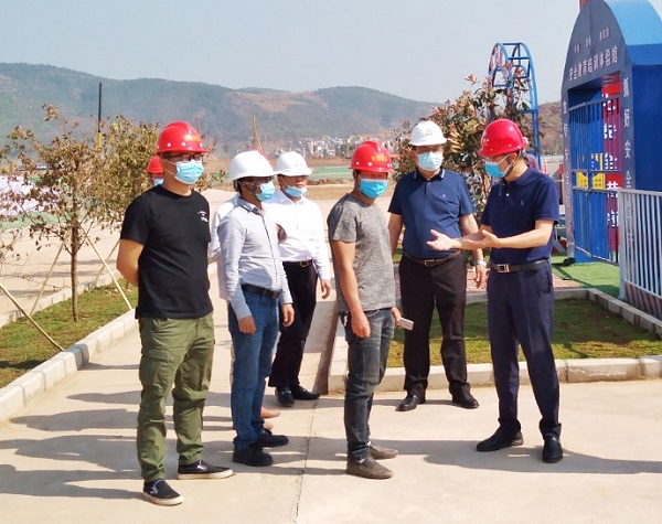 2020年3月30日下午,楚雄州交通投资开发有限责任公司董事长赵煕宇及开发板块项目经理、总工程师一行莅临楚雄民族中学搬迁建设项目,对现场防疫、安全文明施工等多方面进行观摩学习和交流指导。华亿官方执行总裁、云南华邦林业发展有限公司董事长蔡继荣,云南华邦林业发展有限公司执行总经理张志强、副总经理毕绪文全程陪同。