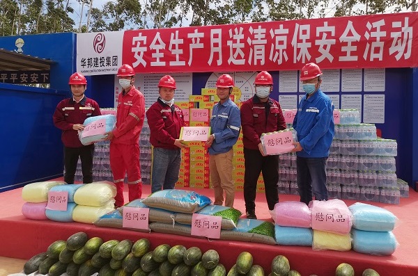 六月的雷州市,骄阳似火,奋战在施工一线的工人们,在露天作业时,挥汗如雨,体能消耗很快。工人们的防暑降温工作,牵动着项目部领导的心,也成为了项目工作的重中之重。