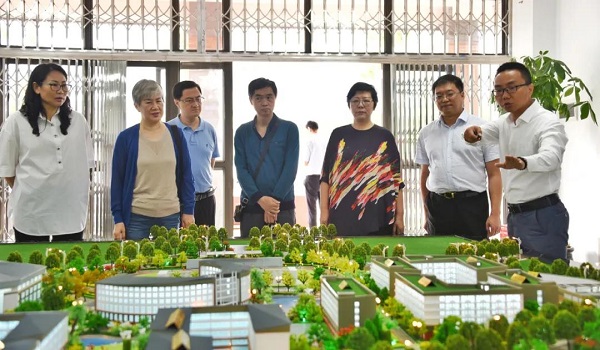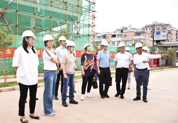 检查组一行在楚雄州民族中学党组书记、校长张萍、副校长李春陪同下参观了民中项目沙盘,云南华邦林业发展有限公司执行总经理张志强、楚雄润民育才投资有限公司工程副总杨永江介绍项目整体规划和目前工程建设情况。