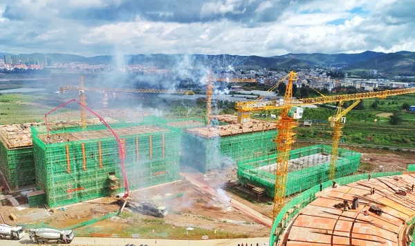9月29日,晴空万里,乐声飞扬。伴随着阵阵鞭炮声,最后一立方混凝土成功填入楼层,由华邦建投集团承建的楚雄州民族中学搬迁建设项目(以下称楚雄民中项目)2#女生宿舍楼及食堂主体顺利封顶。
