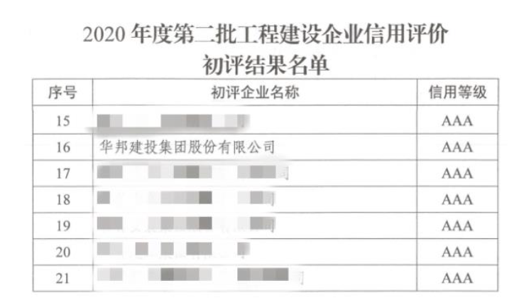 近日,中国施工企业管理协会公布2020年度第二批工程建设企业信用评价结果,华邦建投集团获评2020年度中国施工企业管理协会信用评价AAA级。该协会信用评价AAA级是协会内信用评价最高等级,此次华邦建投初次评审便获得此项荣誉,标志华邦建投合同履约能力、社会信誉、信用程度等多方面得到协会及社会各界认可。