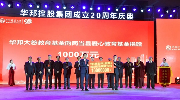 助力慈善,教育为先。华邦慈善基金会名誉理事长苏如春代表华邦慈善基金会率先向华邦大慈教育基金捐款2000万元,甘肃省慈善总会会长、华邦大慈教育基金管委会主任朱志良代表华邦大慈教育基金接受捐款。