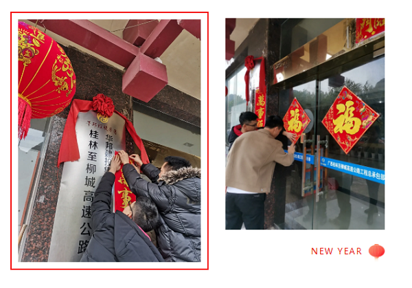工地建起新“家”,异乡过年情亦浓。为了让驻守在工地一线的职工能安心、暖心地度过一个欢乐祥和的春节,华邦建投各项目部早已开始布置,大门上崭新的对联,窗上漂亮的窗花,走廊里火红的大灯笼,气氛满满迎接新春。