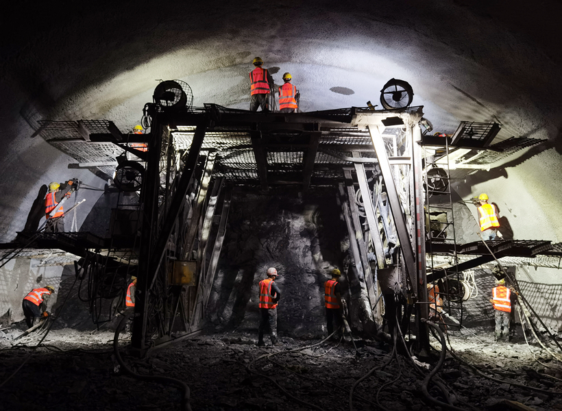▲ 桂柳四标古毫隧道进口左洞上导开挖钻孔