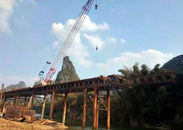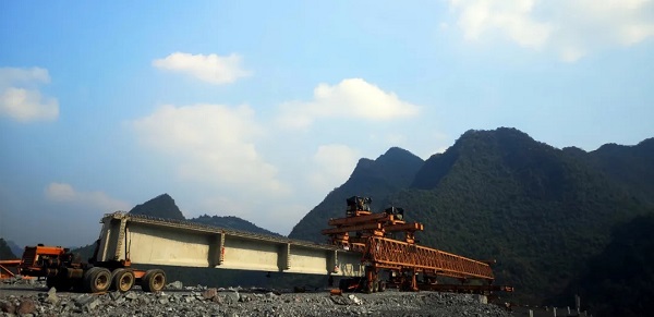 ▲ 桂柳四标百寿互通C匝道桥梁板架设中