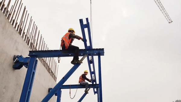 ▲ 灌平二标陆家坪4号墩左幅墩柱爬模架体安装
