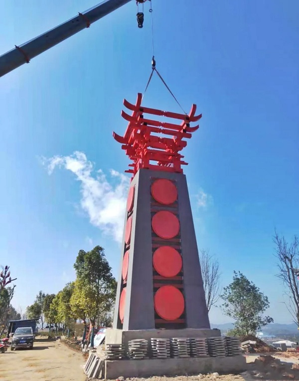 ▲ 元双路县城北入城段火炬基座吊装工作