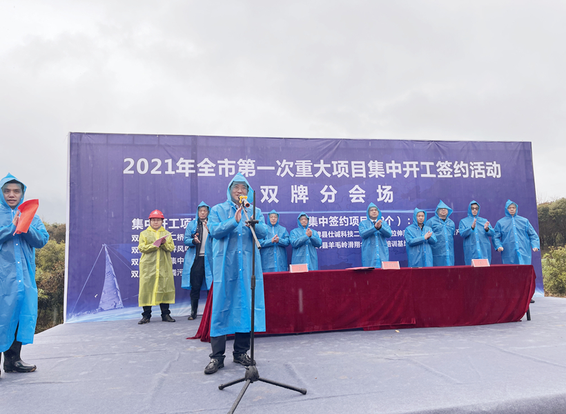 3月1日,湖南永州举行2021年全市第一次重大项目集中开工签约活动,在双牌分会场,由华邦建投集团承建的省道叁肆叁双牌县漯屋至何家洞一期工程项目(以下简称:双牌省道项目)正式开工。该项目将完善双牌城区及河东新区范围道路系统和管网系统,有力推进双牌县河东新区基础设施建设步伐,为双牌百姓的出行带来更多便利,对带动沿途经济发展、助力乡村振兴具有重要意义。