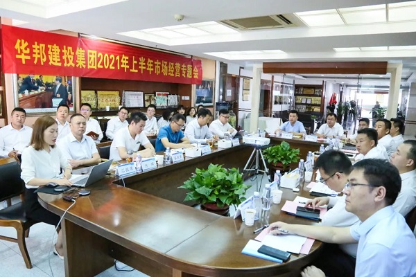 为全面总结 2021 年上半年市场经营工作,部署下半年市场经营任务目标,8月7日,华邦建投集团召开2021年上半年市场经营专题会议。本次会议共设兰州、广州、南宁、重庆、昆明、北京、桂林7个会场。华邦建投集团总裁杨川,分管市场经营的领导班子、各经营单位第一负责人及所有市场经营人员参加会议,会议由华邦建投集团执行总裁胡秉军主持。