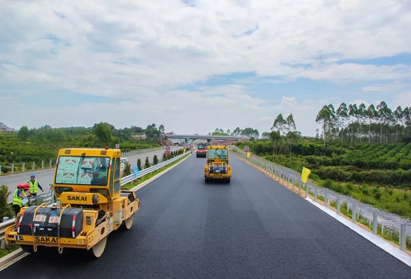 桂柳路面上面层试验段施工中