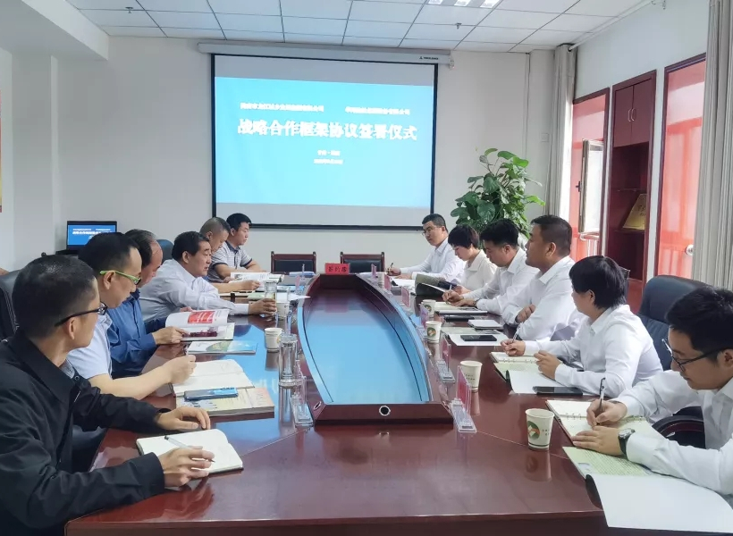 胡秉军(右五)和翟永鹏(左四)代表双方签约