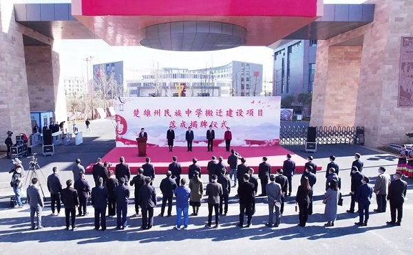 2月16日,由华邦建投集团承建的云南省楚雄州民族中学搬迁建设项目(以下简称:楚雄民中项目)落成揭牌。楚雄州人大常委会副主任李绍文、副州长王秀江、州政协副主席李红梅、州教育体育局党组书记(局长)段福君为项目落成揭牌,华邦建投集团华邦林业发展有限公司执行总经理张志强、楚雄州民族中学教职工代表等参加揭牌仪式。