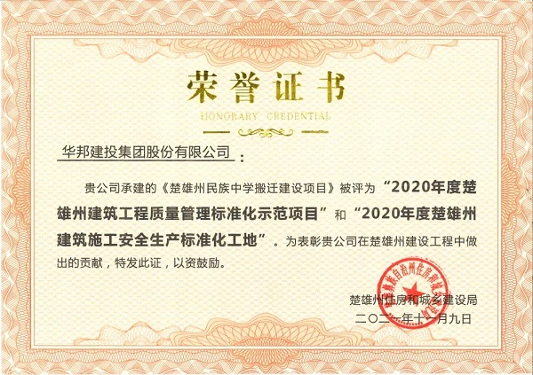 华邦建投集团在项目建设期间,高度重视安全文明施工和施工质量精细化管理,不断强化施工现场的安全管理工作,高度重视施工过程的质量控制环节,获评省州级“2020年度建筑施工安全生产标准化工地”、“2020年度建筑工程质量管理标准化示范项目”,充分展现了华邦建投在房建领域的建设实力,也是对华邦建投先进管理经验的充分肯定。