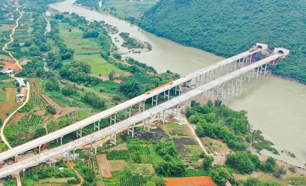 2022年5月1日,灌平高速班山尾大桥顺利完成全幅架通计划