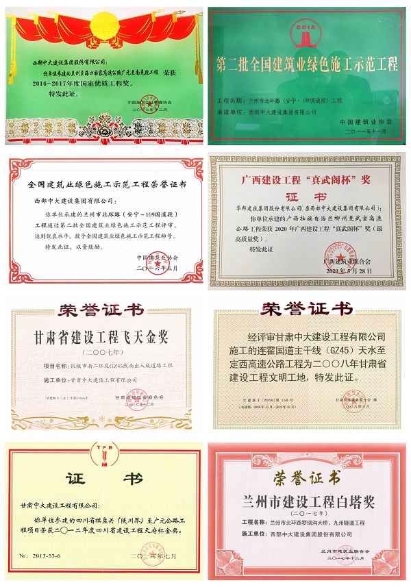 一直以来,华邦建投集团秉承“干一个项目,树一座丰碑”的理念,以“施工精细、技术精妙、管理精心、工艺精湛、精益求精”为目标,致力于创建品质工程。多个项目获得多项奖项,其中,四川省广元至南充高速公路工程获国家优质工程奖、兰州市北环路(安宁-109国道段)获第二批全国建筑业绿色施工示范工程奖、广西柳州至武宣高速公路获得广西建设工程“真武阁杯”奖……