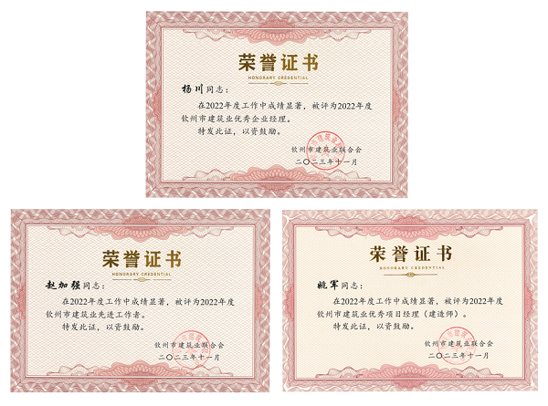 杨川等获钦州市建筑业联合会表彰