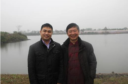 广东省发改委副主任张力军与苏如春董事长在玥珑湖生态城—南中国养老休闲产业示范基地项目现场合影。