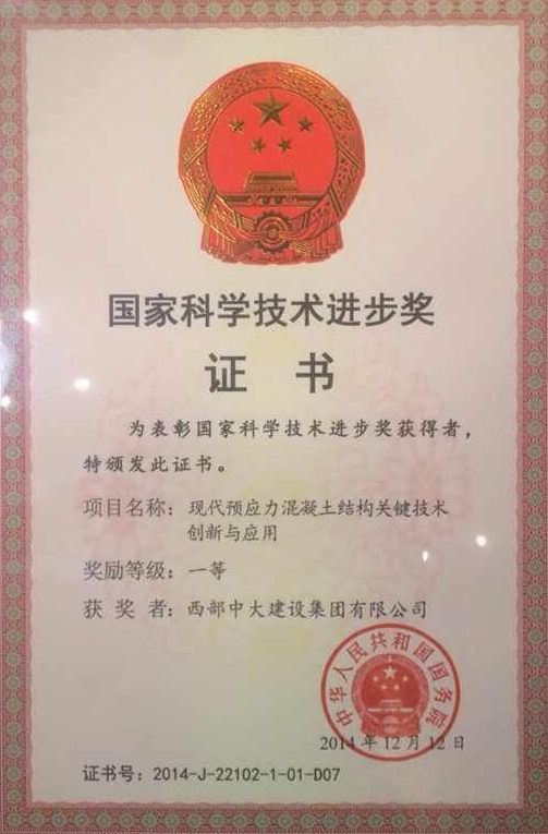 2015年1月9日, 2014年度国家科学技术奖励大会在北京举办,表彰2014年度为我国科技进步、经济社会发展作出突出贡献的科学技术人员和单位。华邦控股旗下西部中大建设集团和东南大学、吕志涛院士等共同研发的《现代预应力混凝土结构关键技术创新与应用》荣获国家科技进步一等奖。