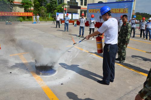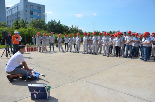 在应急演练过程中,项目部为现场参加人员发放了《安全生产手册》和急救药箱,梧州市万秀区消防大队消防战士现场讲述了发生火灾等事故的急救措施、逃生方法,现场演示了灭火器的使用方法,梧州市红十字会医院专业医生现场讲解了高空坠落、溺水等事故后现场应急处理方式。