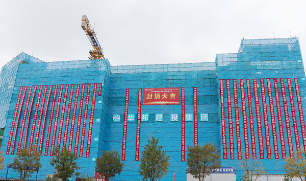 平凉市崆峒区民政局副局长陶小岗;平凉市建筑勘察设计院有限责任公司副院长薛向荣;甘肃华联工程监理有限公司总监理工程师李昊儒;华邦城投平凉区域总经理化希盼等领导及项目负责人参加封顶仪式。