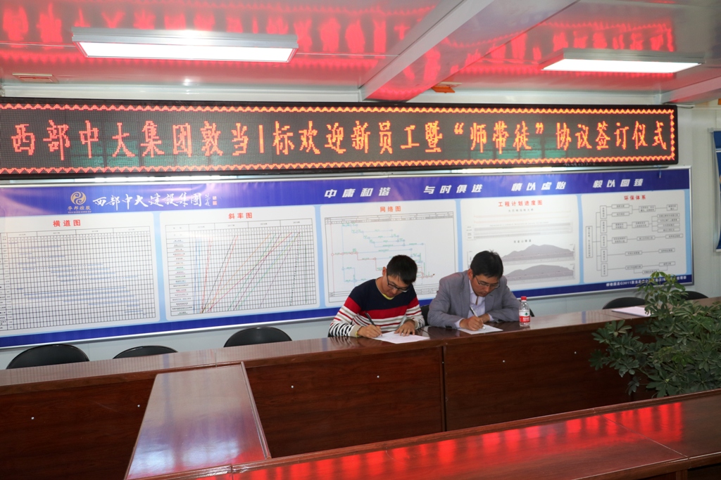 敦当I标共有12名新进职工,项目部高度重视,根据新职工所学专业、职业倾向以及个人意愿,采取双向选择的方式分别为新进职工配备了相关领域经验丰富的导师,做到一对一指导。在签字仪式上,师徒代表作了交流发言,12对师徒分别签订了“师徒协议书”,进一步明确了导师带徒活动的重点内容、师徒双方职责义务、培养目标及考核要求。