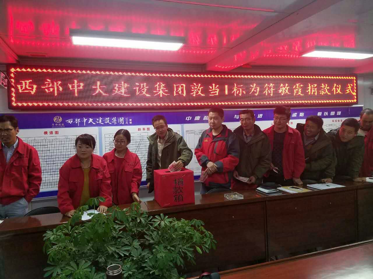 8月27日,随着集团公司一封《倡议书》的发出,员工子女符敏霞的健康问题立即牵动起西部中大建设集团广大职工的的心,集团总部、各子公司员工、各建设项目同事纷纷踊跃捐款,截止9月1日,已收到华邦控股旗下相关企业及集团公司机关、各子公司及各项目共20个单位的募捐总额共 58232.80元,于 9月1日转交到符敏霞父亲符安林手上。