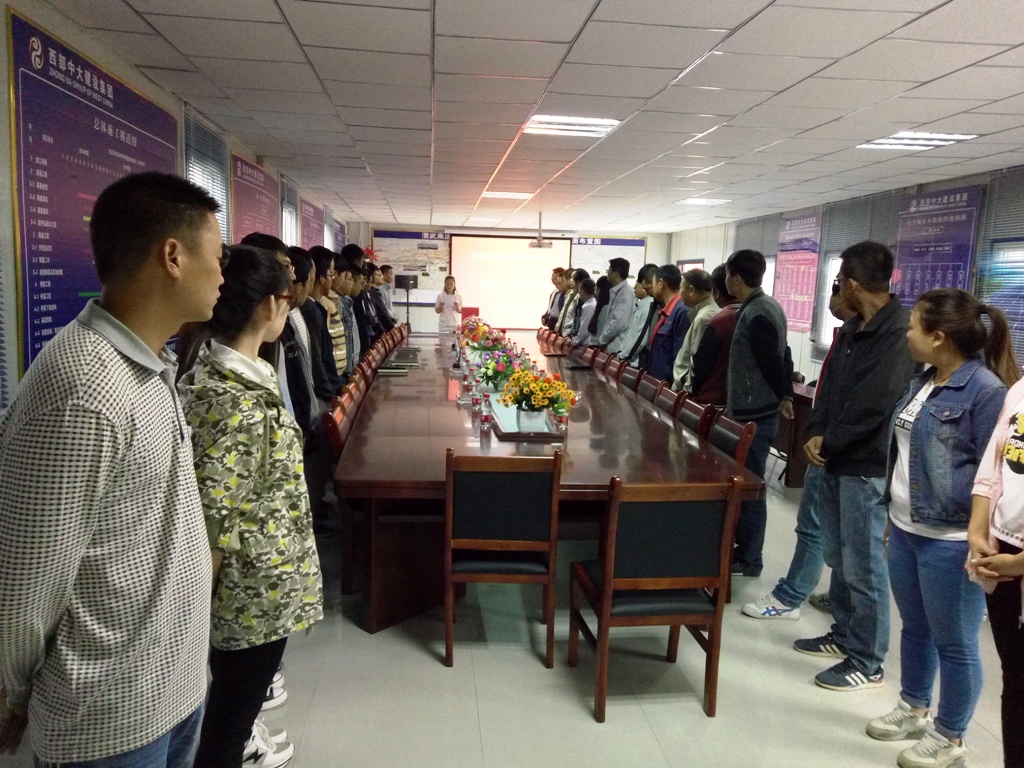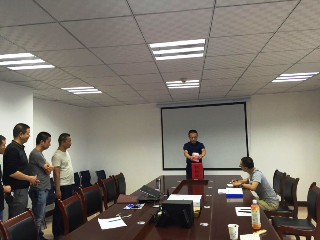 符安林(中)在集团公司南宁总部接受全全体员工捐款