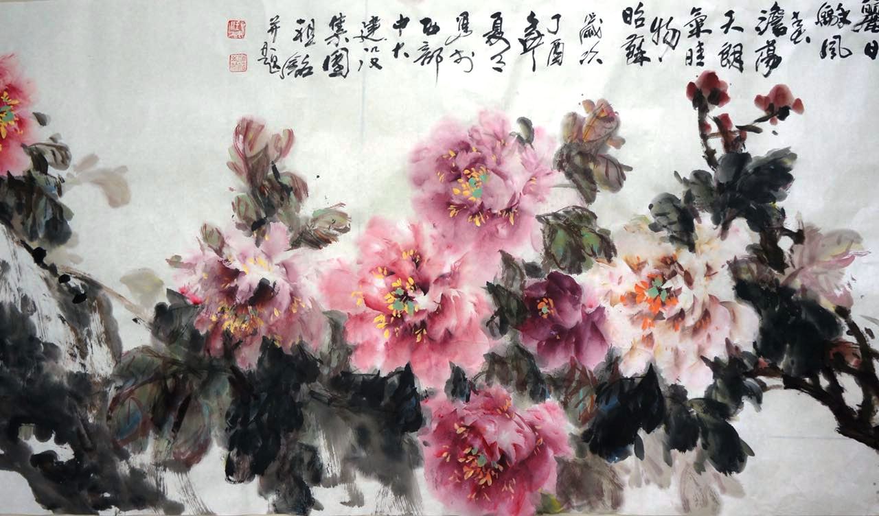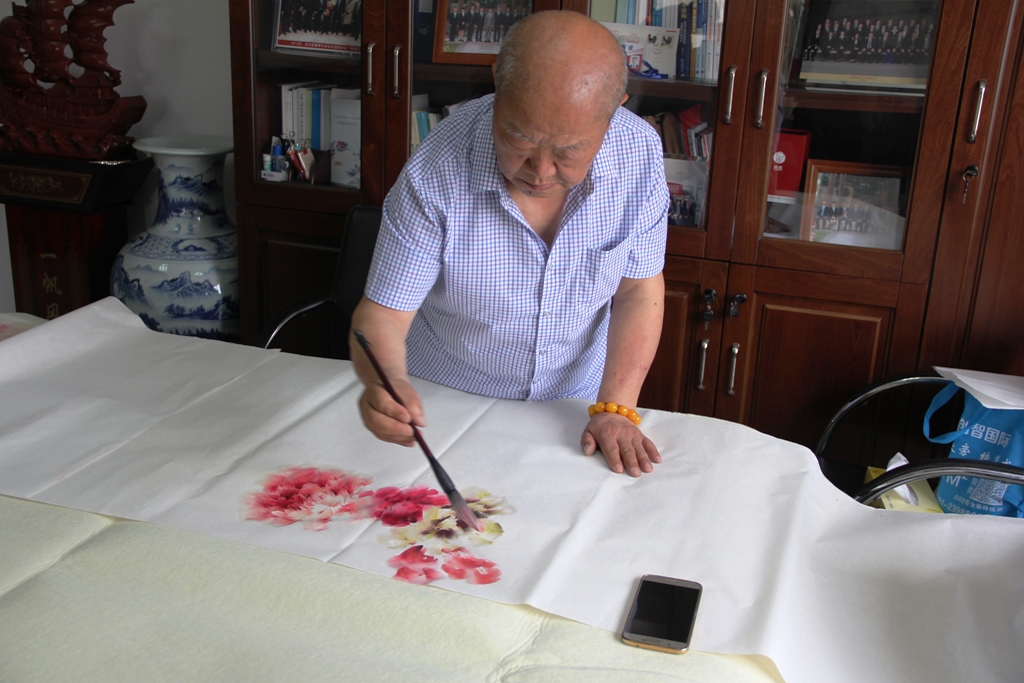 国家一级美术师、甘肃省书画研究院、甘肃省老科协书画研究院艺术顾问、甘肃省长河花鸟画研究院院长为公司现场作画