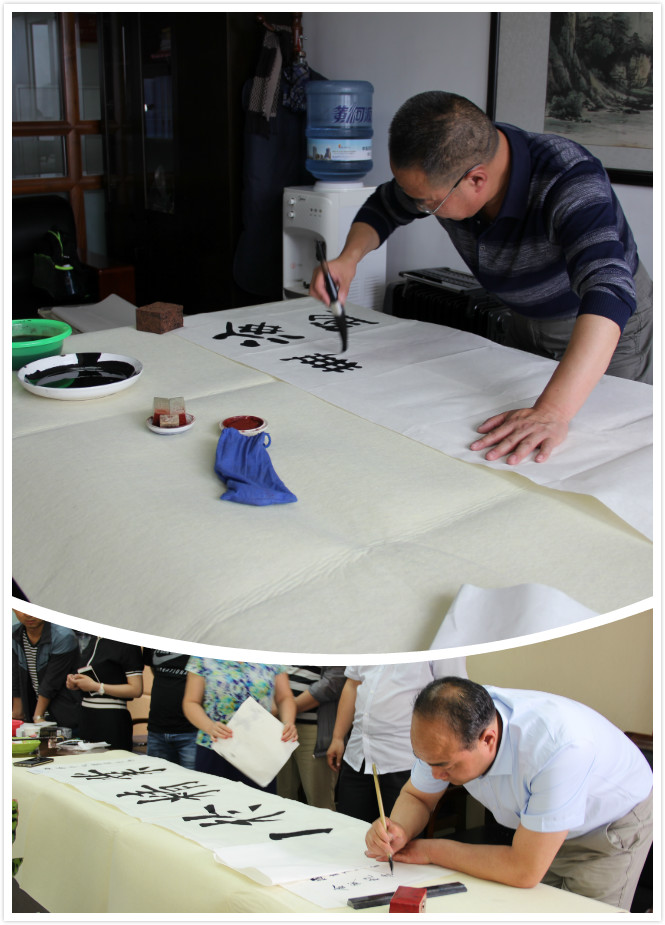 下午14时,在集团公司兰州总部会议室,国家一级美术师、甘肃省书画研究院常务副院长、甘肃省老科协书画研究院院长张正功等七位书画艺术家激情澎湃,纷纷挥毫泼墨,现场创作。“厚德载物”、“沁园春.雪”、“春和景明”等一幅幅作品灵动飘逸,墨韵溢香。大家以书为意,以画为情,充分体现思想道德、古训及名言警句、地域文化等方面创作内容。整个下午,书画家们聚情于笔端,创作了数十幅书画作品,有气势磅礴的自然山水画、有惟妙惟肖的花鸟画,还有各种书体、不同风格的书法作品,充分展示了书画家的艺术水平。