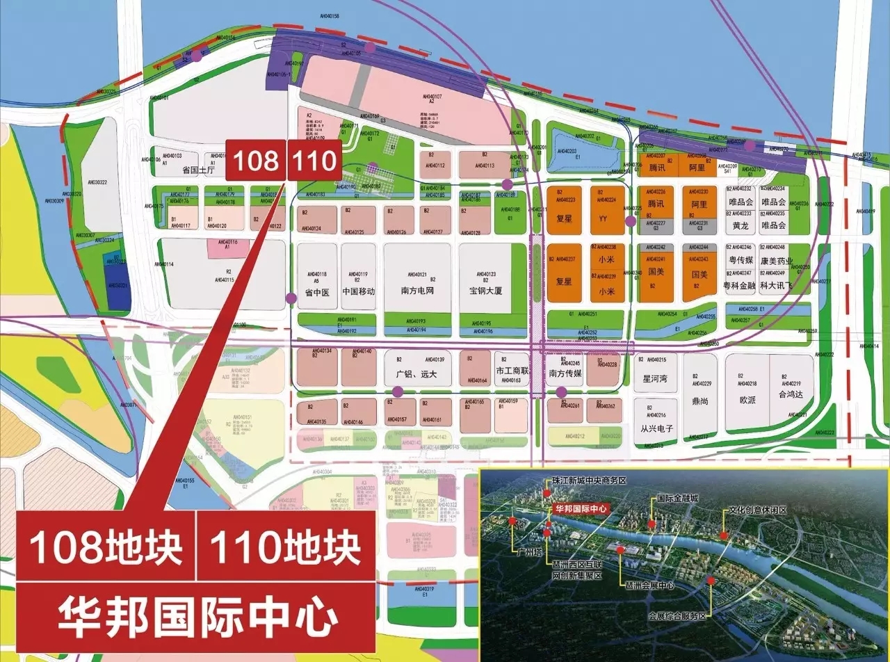 华邦国际中心地理位置示意图,目前国内知名企业巨头总部已陆续进驻海珠区琶洲西区