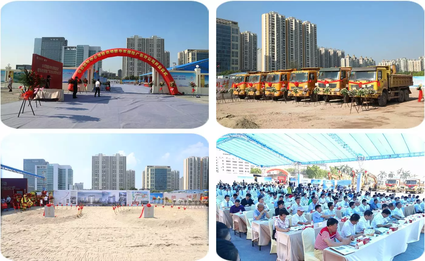 在喧天的舞狮鼓乐声中,董事局主席苏如春与金融界领导、华邦高层管理者及特邀嘉宾向奠基石培土,标志着华邦国际中心正式启动。苏如春与广州市海珠区委副书记、区长李海洲,广州市金融工作局副巡视员李贵远,华农保险公司总经理张宗韬为华农保险广东公司揭牌,标志着华农保险广东公司正式开业。