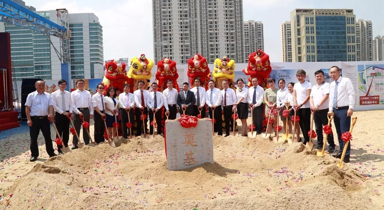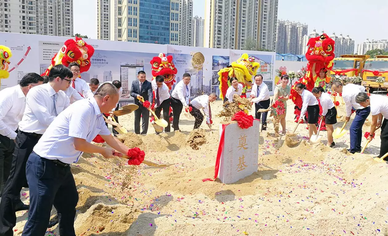 嘉宾代表与公司领导为华邦国际中心(写字楼和酒店)奠基石培土